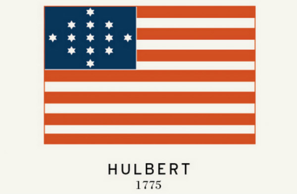 约翰·赫尔伯特(John Hulbert)1775年设计了这一版本。据说他管辖下的纽约第三军团使用了这面旗帜。图中的六角星按照圣安德鲁十字排列。↓