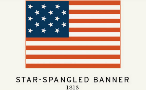 1812年战争期间,这款星条旗(Star-Spangled Banner)曾飘扬在麦克亨利堡的上空。它的存在激发弗朗西斯·斯科特·基(Francis Scott Key)创作出了大家耳熟能详的同名歌曲。↓