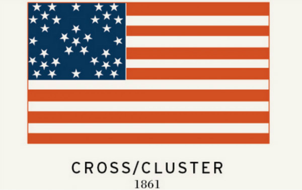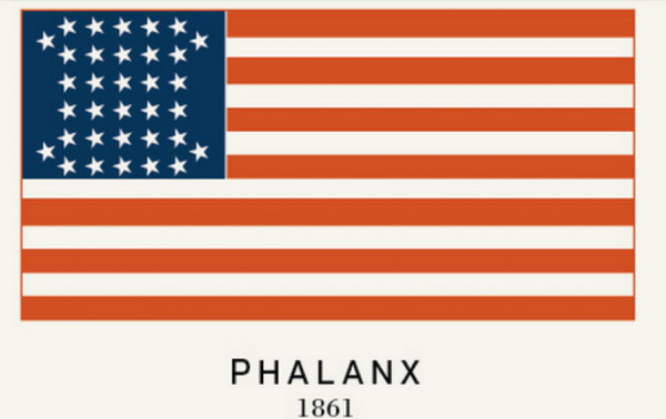 “密集阵”是一种可以追溯至古希腊的军事队形。最外围的星星代表着军队领导者和散兵,较长的条纹形状使其看起来更像是海军旗。↓