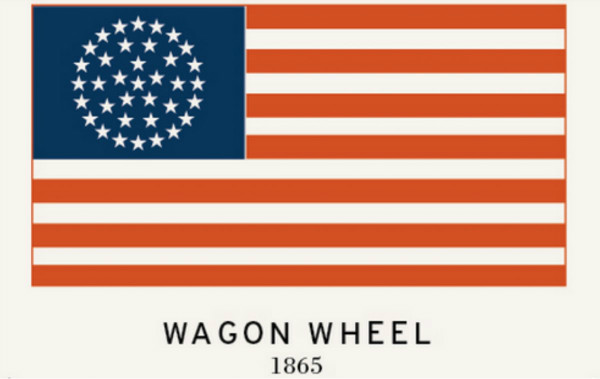 这款车轮旗(Wagon Wheel)上总共有36颗星星,一圈一圈的围成圆环,中心还有一枚五角星。↓