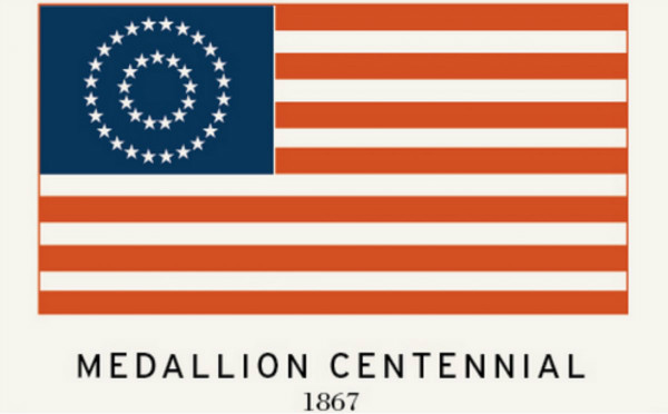 “大奖章”旗在1876年美国建国百年之际特别流行,尤其受收藏家们的热捧。↓