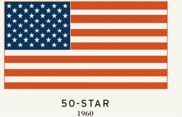 1959年罗伯特·G·赫福特(Robert G. Heft)设计出了现代人熟知的美国国旗图样,当时他还是俄亥俄州的高中生。同一年,夏威夷被纳入美国版图。国会法案对这款国旗的高度、宽度和色彩都进行了严格规定。↓