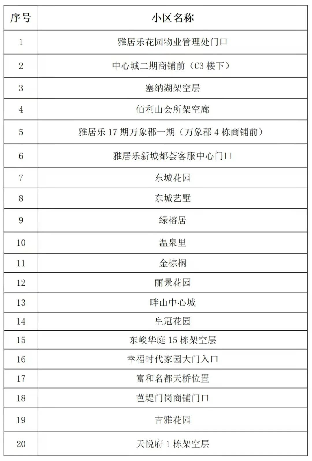 三乡镇20个物业小区核酸采样点