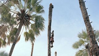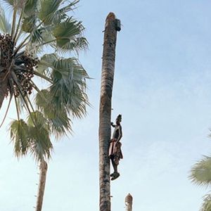 在纳米比亚库内内地区进行了数个月的拍摄活动后,吉乐·维克斯(Kyle Weeks)再度返回探望自己照片中的主角们。在他的探望之旅中,他被当地人带去参观河边的棕榈采摘活动。一位熟人带他走过灌木丛并向他展示攀爬树干汲取棕榈酒的过程。维克斯说:“看着他富有艺术感地爬上棕榈树,我承认他在向我展示这项技艺时极富自豪感。”