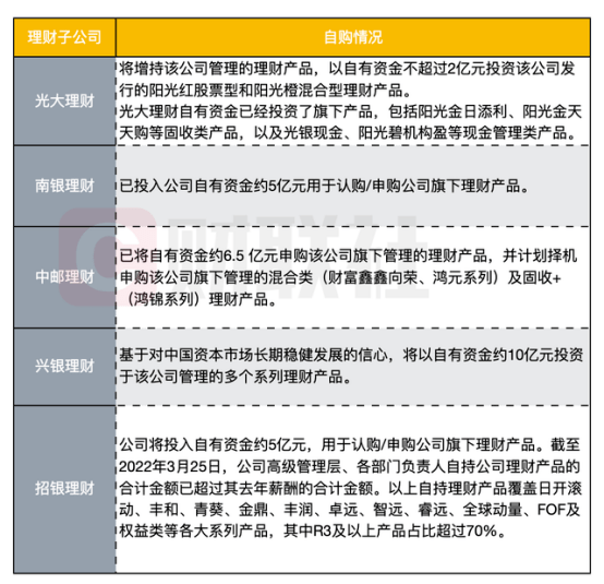 紧接着,南银理财5亿、中邮理财6.5亿、招银理财5亿、兴银理财10亿……银行理财子也开启了“自购潮”: