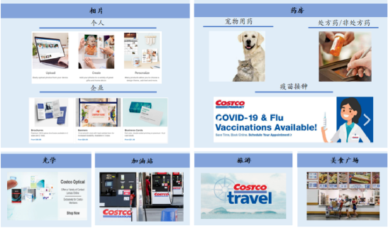 Costco提供不满意无条件退货的政策,对于某些电子产品,有90天的退货政策,并免费提供技术支持服务以及延长保修期。同时,公司在门店附近提供包括汽油、药房、眼镜、美食广场、助听器和轮胎安装和商务中心、旅游等在内的多项服务。
