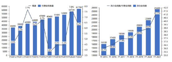 近十年来,在不同经济环境下付费会员数始终保持正增长,大部分年份的增长率在5%以上。即使在金融危机时,付费会员依然实现7.5%的增长。