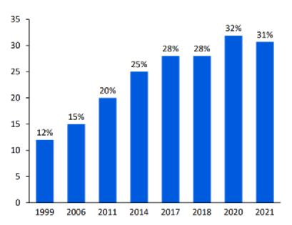自有品牌对公司“优质低价”定位提供进一步有力支撑,自成立以来其占比逐年增加,2021年自营业务Kirkland达到590亿美元,占商品净销售额的31%,同比增长13.5%。也就是说,有三分之一的商品都是自己的品牌。