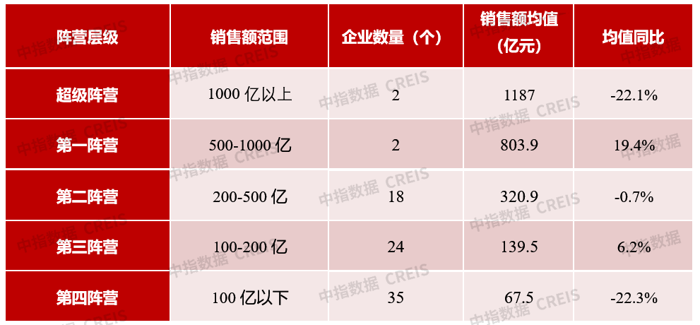01 2家房企超千亿,TOP100房企销售额均值为162.6亿元