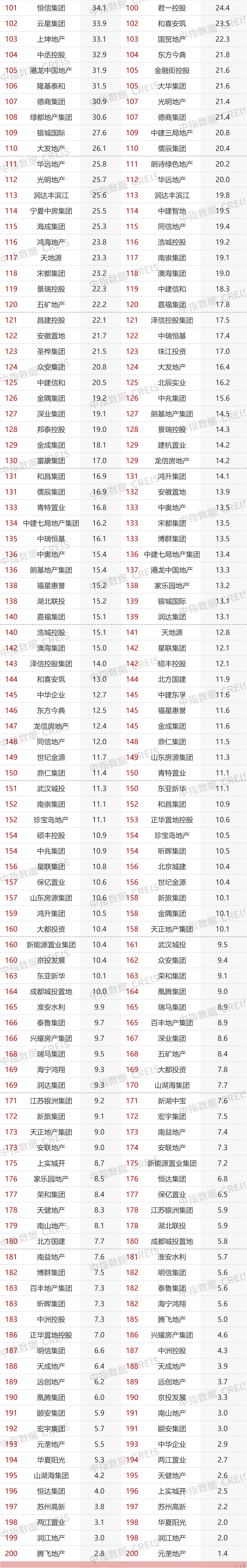 特别声明:房地产企业销售数据统计是以2022年1月1日-3月31日期间销售的并表商品房为统计口径,主要依据中指数据CREIS在各地的销售监测数据,并参考当期总体经营情况和推盘去化情况进行分析统计;对于少数没有在监测范围内的城市或项目,由企业提供相关证明文件,经课题组对数据进行严格审核,也纳入统计范围。本报告仅供参考,课题组不对使用报告及其内容所引发的任何直接或间接损失承担责任。