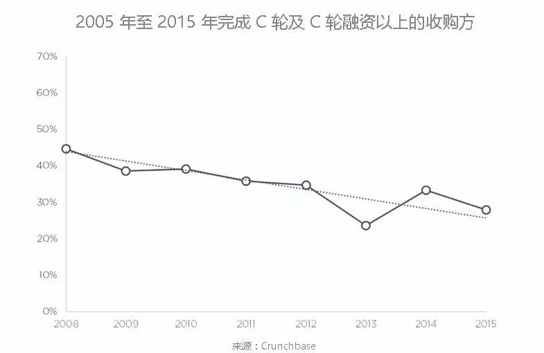 按绝对值计算,如果后期融资的数量增长速度,超过了退出企业的数量增长速度,那么市场上「搁浅资产」的数量就会增多;如果后期融资数量的增长速度超过了退出的增长速度,那么投资者和企业家获益的可能性也会下降。这就可以理解我们前面提到的为什么那些创业者连很小的机遇都绝不放过。
