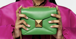 Valentino华伦天奴Garavani One Stud手袋代表着经典,现代与创意,个性鲜明的信封包廓形搭配品牌标志性4cm x 4cm超大铆钉,放大版铆钉化身磁铁带扣,该系列手袋囊括多款包型,均在绚丽绘色下散发迷人自信,彰显先锋姿态。