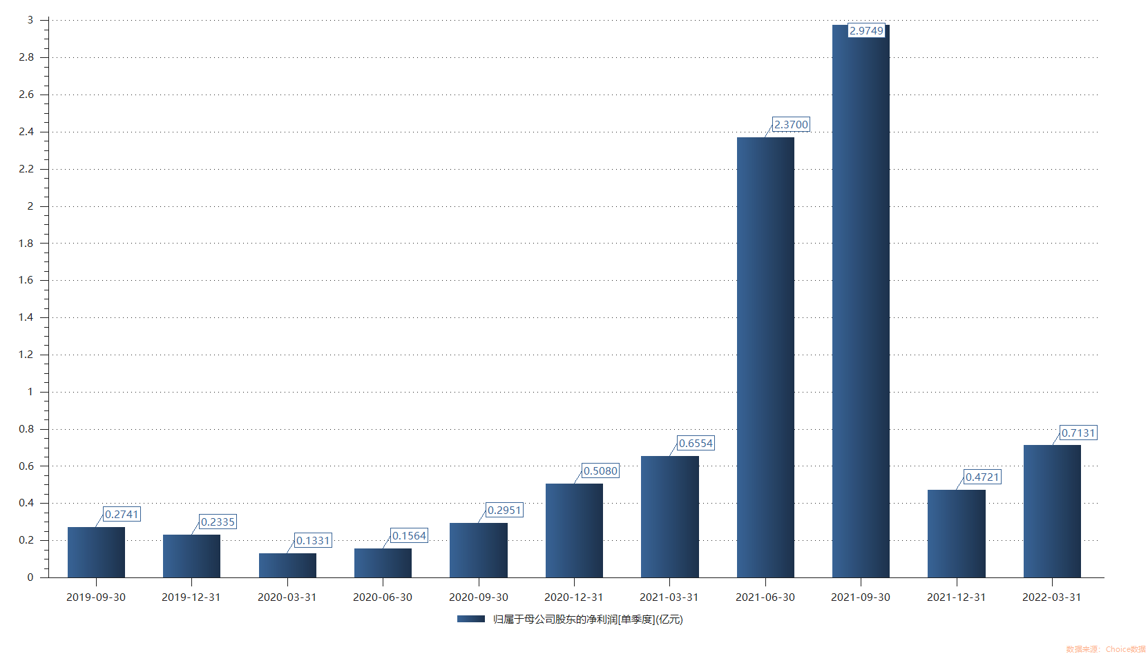 分季度来看,2021年前三季度,明微电子业绩业绩增长趋势明显,营业收入由一季度的2.02亿元提升至三季度的4.53亿元,净利润也由0.66亿元增至2.97亿元。前三季度净利润高速增长,同比增幅分别为3.92倍、14.15倍、9.08倍。