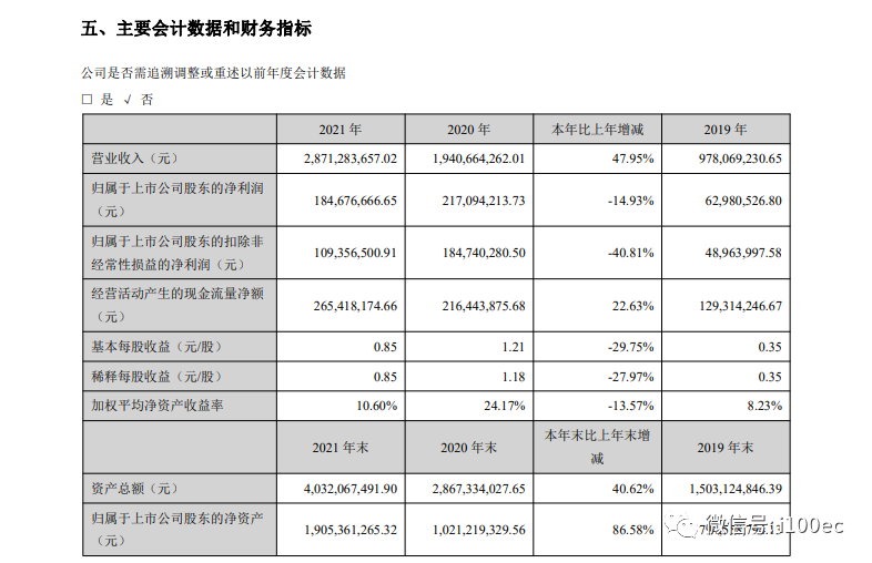 报告显示,乐歌股份2021年度实现营收28.71亿元,比上年同期增长47.95%;归属上市公司股东净利润1.85亿元,比上年同期下降14.93%。经营活动产生的现金流量净额2.65亿元,同比增长22.63%;基本每股收益0.85元,拟每10股派发现金红利2元(含税)。
