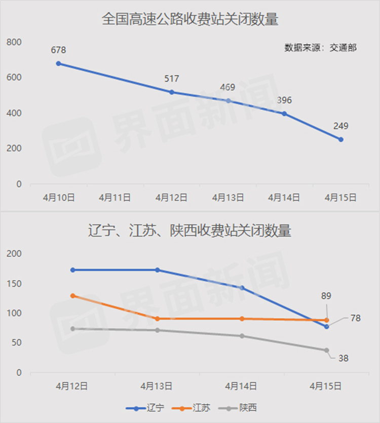 近几日,国务院和交通部多次发文,要求保障物流通道顺畅。交通部从4月12日起,每日发布各省高速公路收费站和服务区关闭数量,通过数据督促各地整改。
