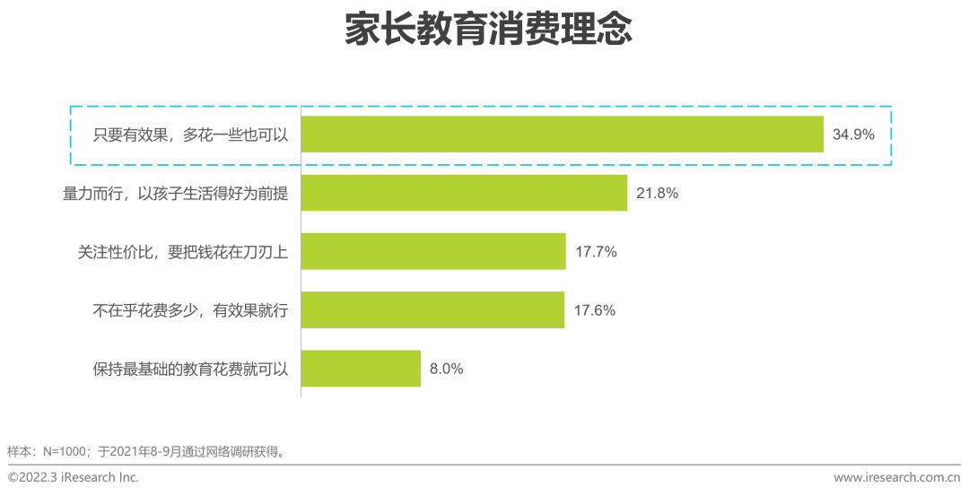 驱动因素:新生代家长教育理念升级教育消费增加,家长对有效教育产品有着较高的付费意愿随着社会经济的快速发展以及对教育的重视程度不断提升,居民在教育文娱方面的消费水平也稳步攀升,2016年以来(除2020年受疫情影响),全国人均教育文娱支出保持在人均消费性支出的11%左右,这背后反应的是居民教育消费理念的升级。从用户调研数据来看,34.9%的用户持有“只要有效果,多花一些也可以”的教育消费理念,他们一方面重视教育效果,一方面对于有效的教育产品也有着更高的付费意愿,这为功能性儿童学习用品行业的发展提供了有力支撑。