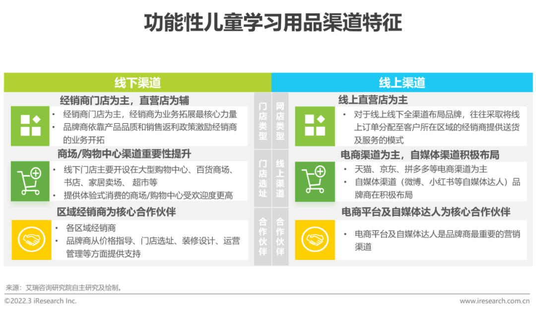渠道特征:线下推品质,线上重价格全渠道为发展趋势,头部品牌线上线下同步推进中低端及以上产品的主要功能基本齐备,而板材、配件的用料和工艺细节则彰显产品间的差异。对于定位偏高端的产品,线下的实体店为客户提供真实的产品体验和专业的导购讲解必不可少,家长也更倾向于实地考察。线上渠道辐射范围广、发展速度快,但竞争壁垒低,爆款、低价是核心要素,容易被模仿和超越,竞争力不容易维持,同时也存在着线上流量越来越贵而产品提价困难的发展瓶颈。总之,线下前期成本高,发展速度慢但客户体验好,退货率低,同时存在一定“排他性”,进入壁垒高;线上发展速度快但竞争力难维持,线上线下融合的全渠道布局成为头部品牌的共同选择,如光明园迪、护童等都在进行全渠道的布局。