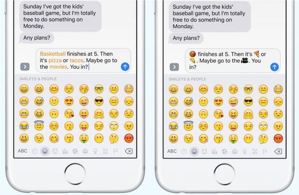 其次,iOS 10的短信功能也得到了很大的丰富。除了emoji表情库增加外,还支持文字直接转化emoji表情,并增加了对GIF表情包的支持。