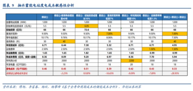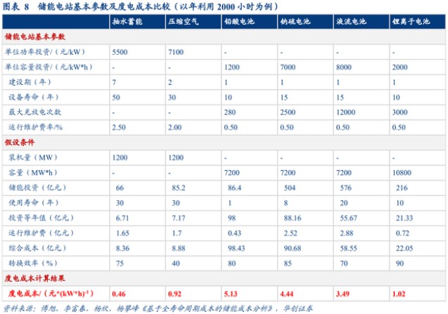 抽水蓄能度电成本具有优势。傅旭、李富春、杨欣、杨攀峰曾发表《基于全寿命周期成本的储能成本分析》一文,其中对抽水蓄能电站成本做出过研究。华创证券在此基础上对抽水蓄能的成本进行了推算。