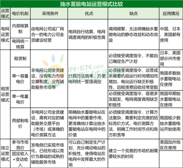 抽水蓄能电站运营模式分为电网运营模式、租赁运营模式、独立运营模式三种。其中的电价机制不尽相同,各类运营模式我国几乎都使用过。
