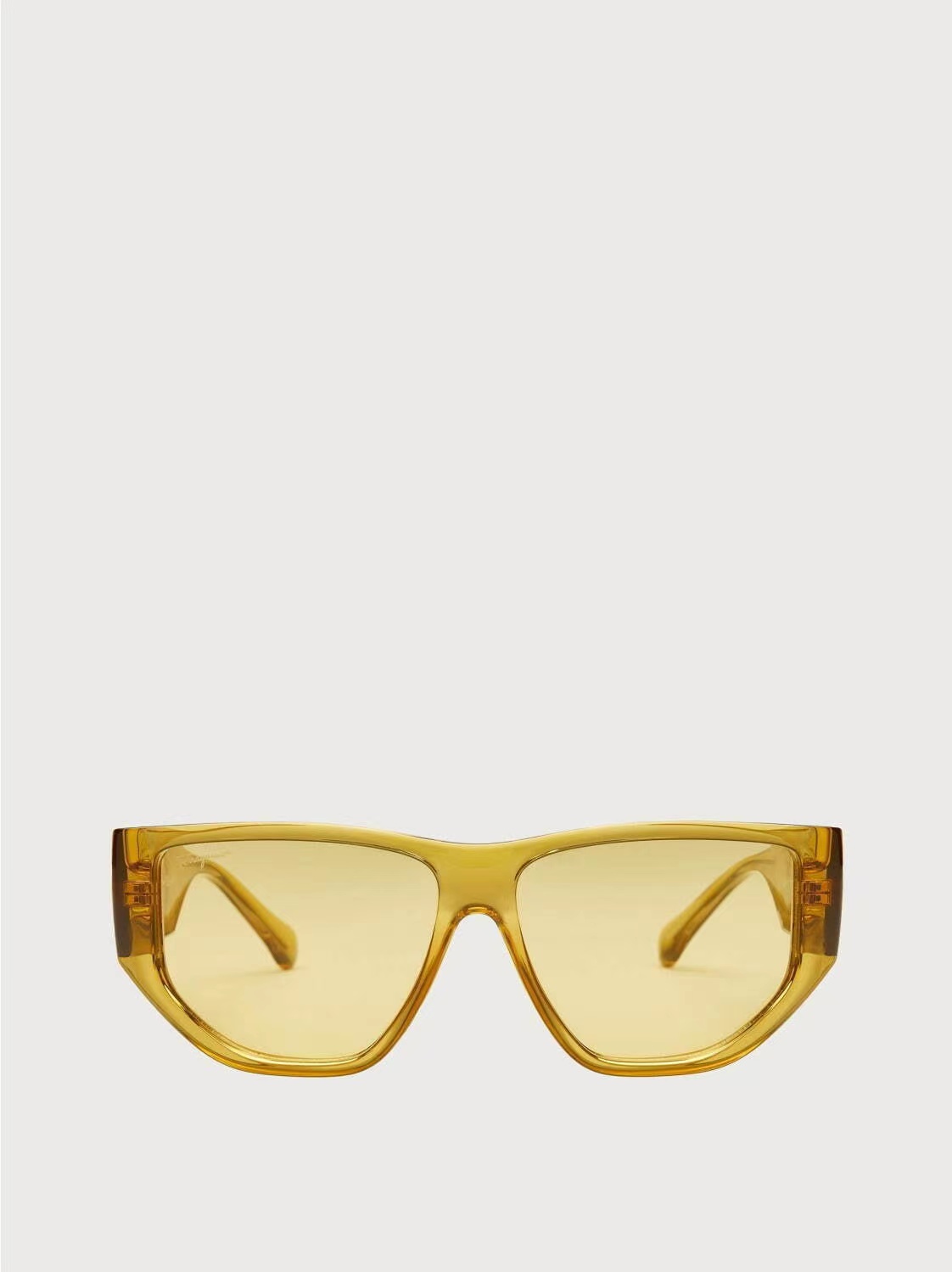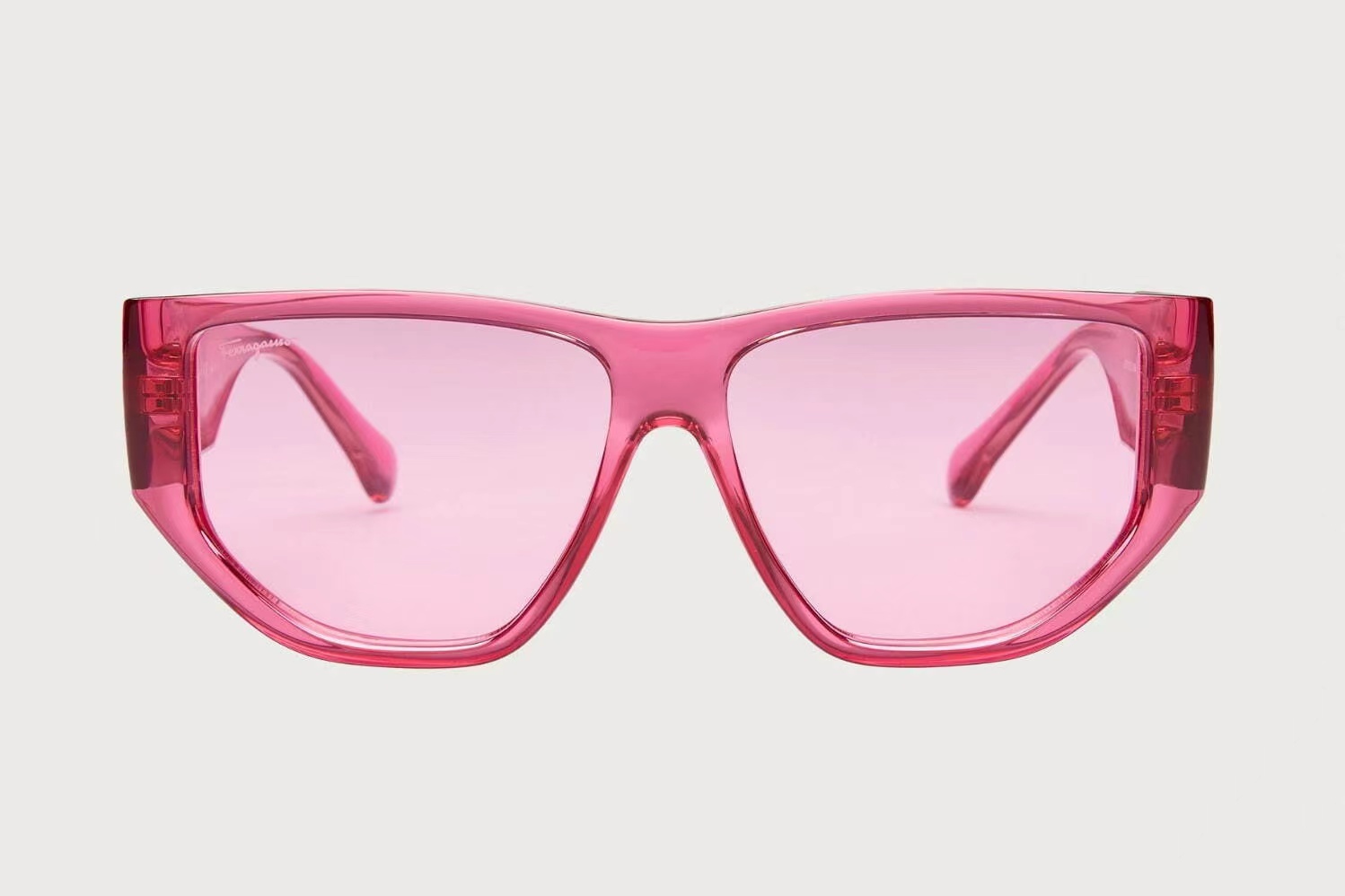 菲拉格慕新款太阳镜最大特色是其炫彩通透的质感,霓虹灯一样变幻七种色选,像粉色、绿色、蓝色、黄色等彩色组成的调色板,也能让人联想到Salvatore Ferragamo此前推出的标志性彩虹鞋。这款眼镜在材质上也具有创新性,考虑到可持续发展的环保理念,框架以植物为基础的复合材料制成,镜片则由回收的木材和农业废弃物成分构成。