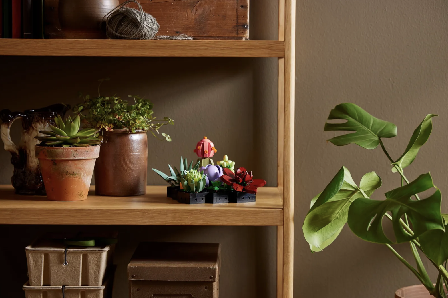 近年来,多肉植物逐渐成为花卉爱好者最受欢迎的盆栽,例如代表纯真善良露娜莲,叶片排列紧密,形状类似一朵盛开的小玫瑰花;还有形状像牡丹,叶片带有白粉的白牡丹,都是多肉当中人气品种。花友们悉心养护,为了让自己心爱的肉肉安稳度过四季,同时也是对美好生活的一份希冀。但谁可以拒绝永不凋零的鲜艳花卉呢,LEGO就是玩转“永生花”概念的先锋代表。