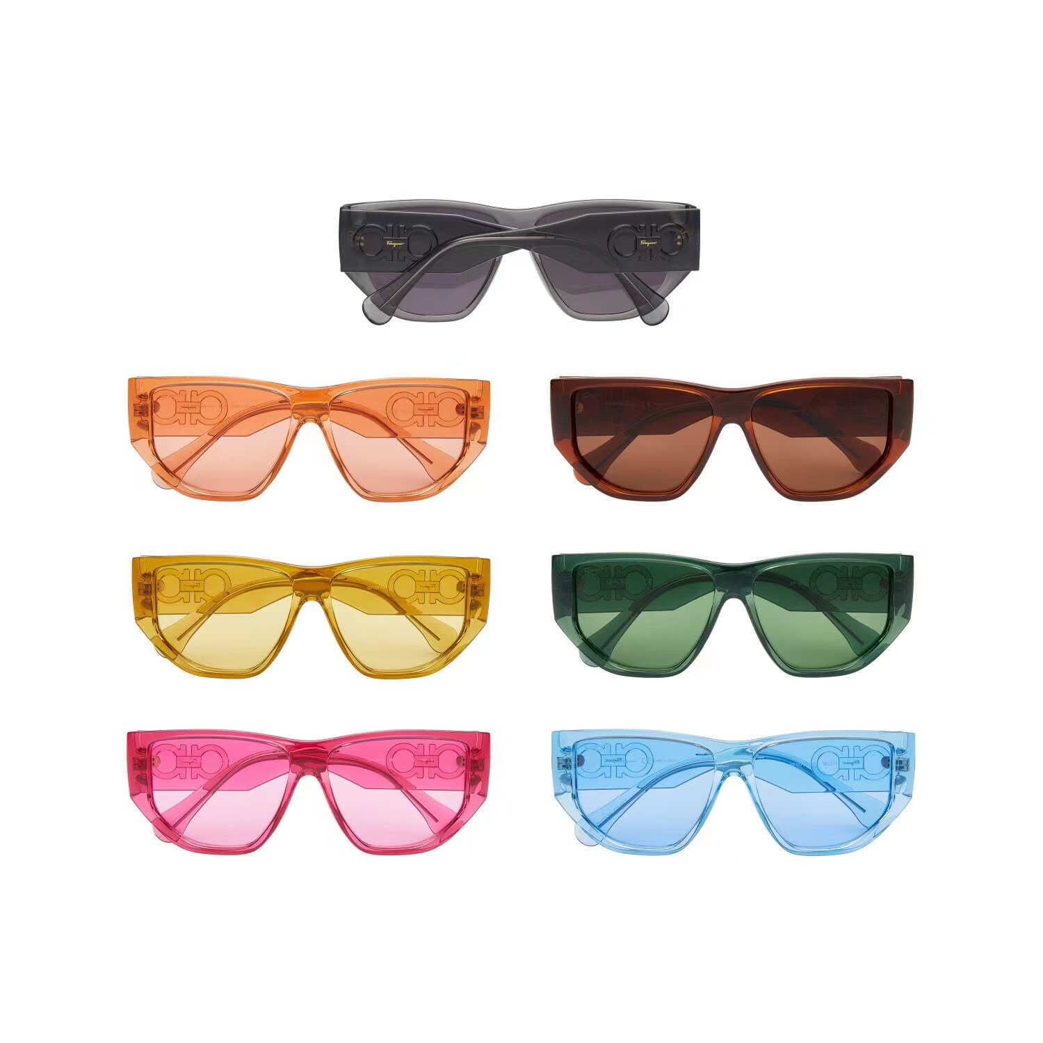 Salvatore Ferragamo全新太阳镜拥有彩色框架与经典品牌标识,从80年代的超大尺寸的方形框架到全新中性设计,眼镜玩转潮流糖果透明色,选用环保材质灵活演绎百变轮廓,缔造未来风格,是春夏搭配日常着装的理想配饰。