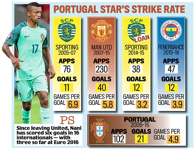然而与范佩西、维尔贝克和埃尔南德斯等前曼联队友一样,被范加尔弃用的纳尼却在新东家找回了状态。与范佩西继续并肩作战的他在28轮联赛中完成8粒进球和9次助攻,成为球队获得土超亚军的关键成员。而在本届欧洲杯的这支葡萄牙队中,纳尼也和C罗、佩佩等老将一起,带领着桑切斯、戈麦斯和达尼洛等后起之秀出征法国。