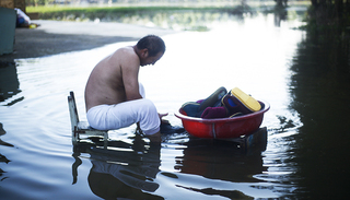 他拿出一张照片,对界面新闻记者说,自他有记忆的1991年以来,这是第二次家被洪水冲毁。