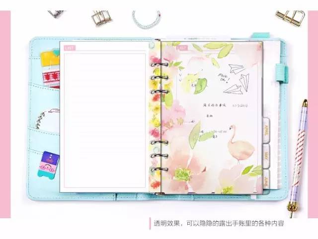 分割页在手账本里也是一个重要的部分,而lovedoki中就要一些可爱的分割页,除了精致大方的春天系列外,还有半透明的分割页,令本子里的手帐内容更清晰。