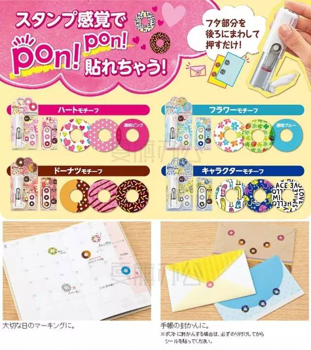 如果你是手帐爱好者,又不想费太多时间画画,那这款神器适合你!轻巧的造型和精致的图案,非常适合在月历和周记上使用。如果想临时取消或者擦除只要用底部的像皮擦拭即可。