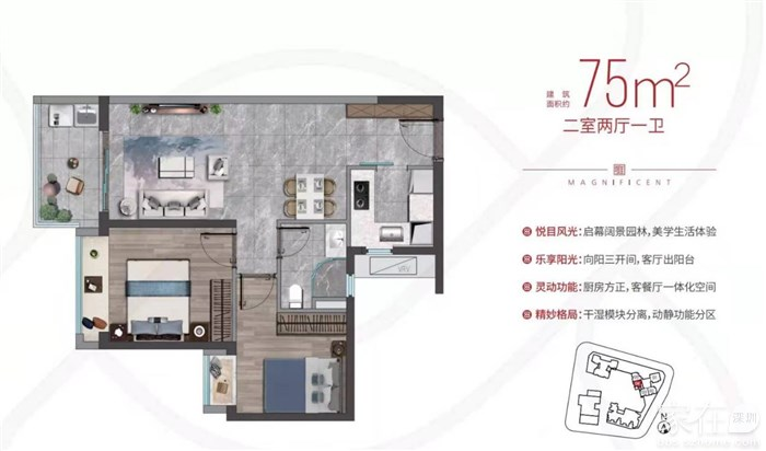 最小户型为建筑面积75平方米2房,对刚需较为友好,不过项目整体体量较小,总建面约5.43万平方米。