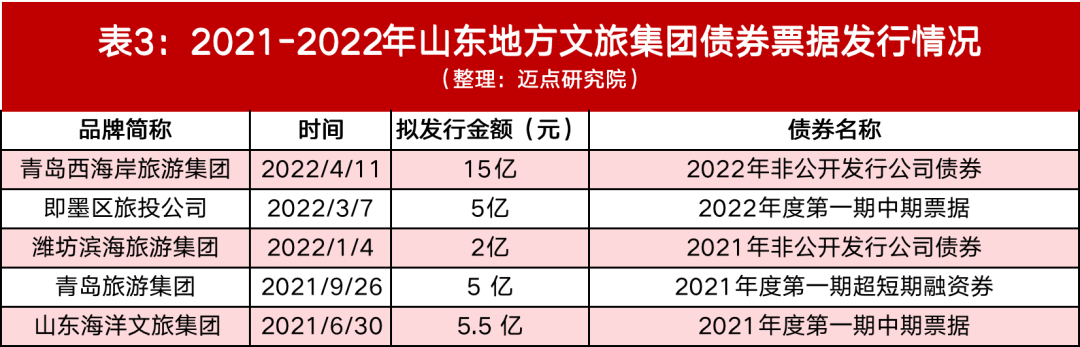 迈点研究院统计发现,2021年至今,仅有5家文旅集团通过公募债和私募债拟定发行,累计金额32.5亿元。值得关注的是,这些文旅集团全部位于沿海地区,且集中在青岛。