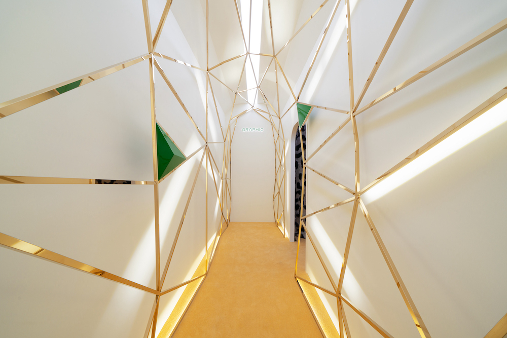 在猎豹美学回廊中,首尾依次相接的三条通廊代表了这一风格的三种美学密码。“NATURALIST”通廊以逼真的皮毛斑纹图案营造自然之感,独到的“皮毛镶嵌”工艺正是因其而生。“GRAPHIC”通廊线条简约利落,通过现代风格的结构呈现体态的动感,释放几何美学的张力。“ABSTRACT”通廊中抽象的豹斑图案,极具韵律美感。