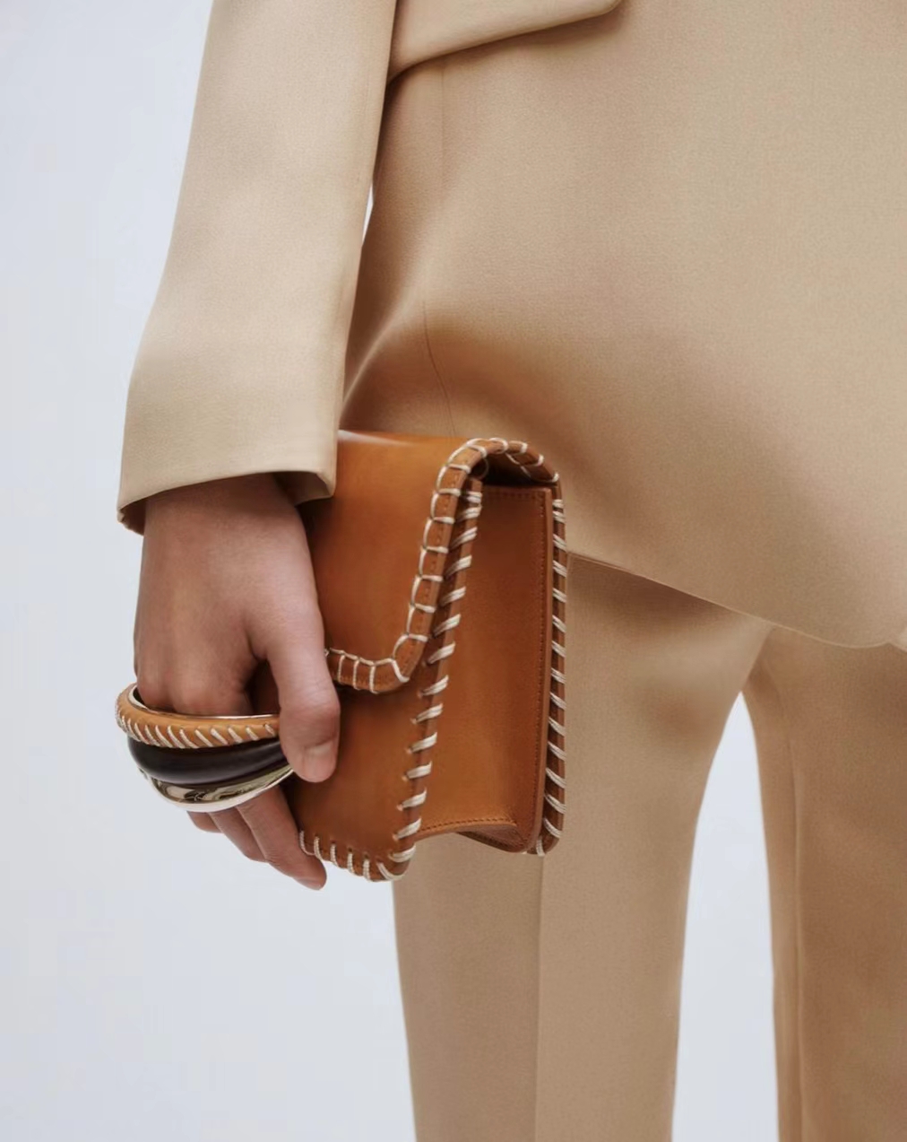 Kattie Bag一定有资格进入“It Bags”行列,细腻柔和的彩色皮革搭配工匠手缝针细节与银色金属环扣,与环扣组合在一起的是手工编织皮革装饰,或者木质环形配饰,每一处设计都经得住推敲,每一处走针也细节满满。