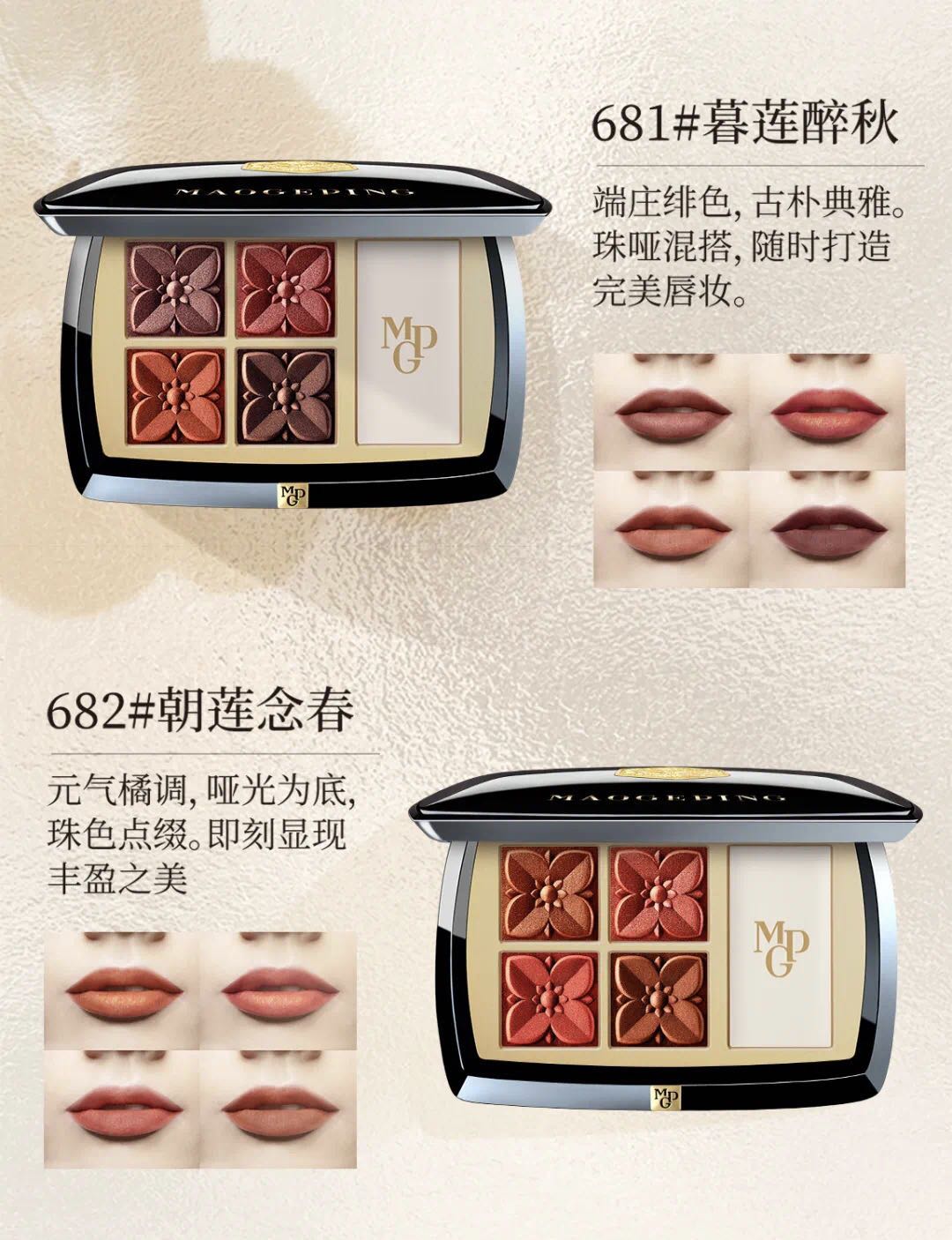 除了SIT.E唇粉之外,近期因为上市消息而受到广泛关注的毛戈平品牌也出过一款四色唇粉盘,11g的规格售价为580元。