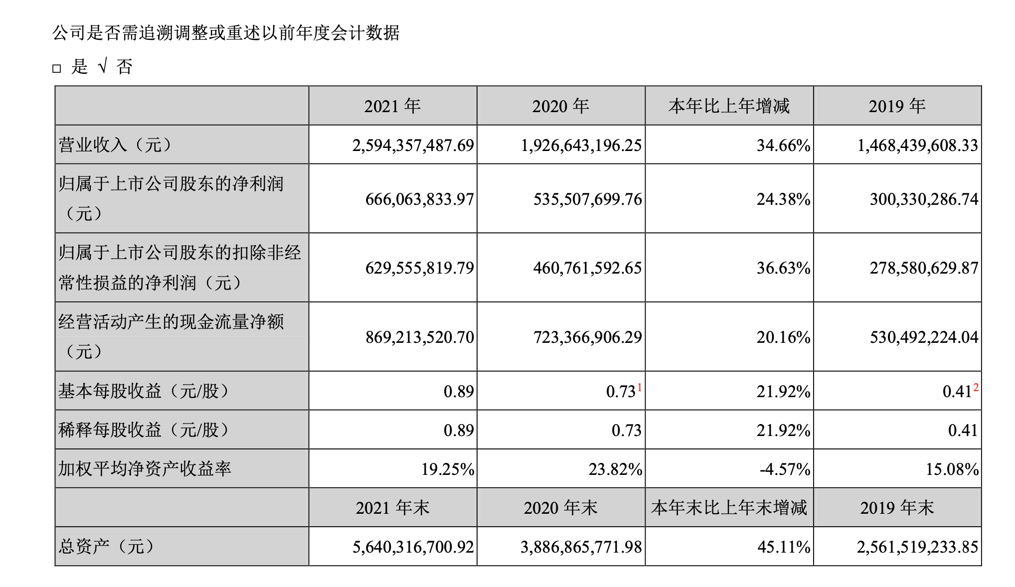 4月25日,上海百润投资控股集团股份有限公司(以下简称“百润股份”)(002568)发布《2021年年度报告》显示,去年实现营业收入25.94亿元,同比2020年19.27亿元,同比提升34.66%;归属于上市公司股东的净利润为6.66亿元,同比2020年5.36亿元,提升24.38%;经营活动产生的现金流量净额为8.69亿元,同比2020年7.23亿元,提升20.16%。其中,2021年预调鸡尾酒(含气泡水)业务实现营业收入22.85亿元,同比提升33.49%;毛利率为65.85%,同比提升0.48%。