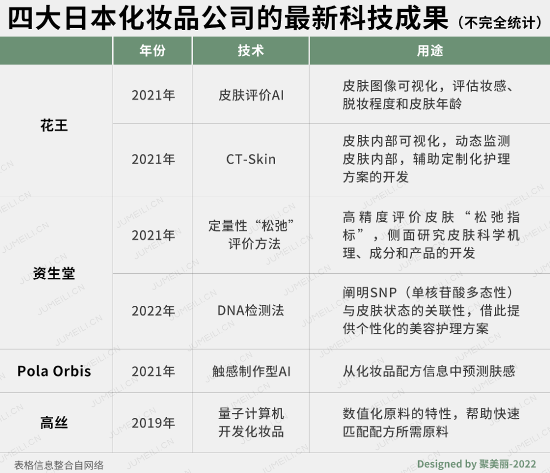 记者了解到,这4家日本化妆品公司在新科技的应用上也有不同的成果,如表格中所示: