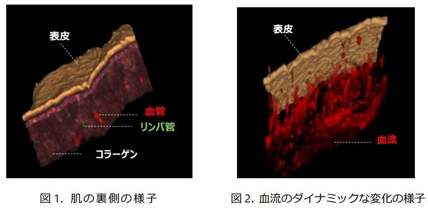 同年12月,花王在JM-OCT的基础上,结合了另一种原创算法和三维(3D)技术,开发出新技术“CT-Skin”(相干断层扫描皮肤),这项技术可以更真实地看到皮肤内部,并在不损伤皮肤的情况下查看皮肤的变化。据称,CT-Skin 可以再现皮肤表面、血管、淋巴和胶原蛋白的分布情况,甚至能够可视化血液的流动。