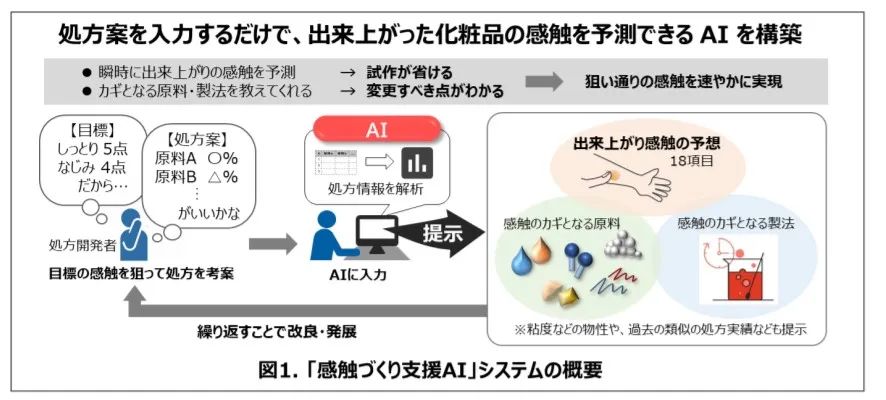 除了产品定制外,AI技术在配方开发中也占据重要地位。2021年, Pola Orbis与生物医药解决方案供应商SBX合作,共同开发并构建“触感制作型AI”,可以从化妆品配方信息中预测肤感。