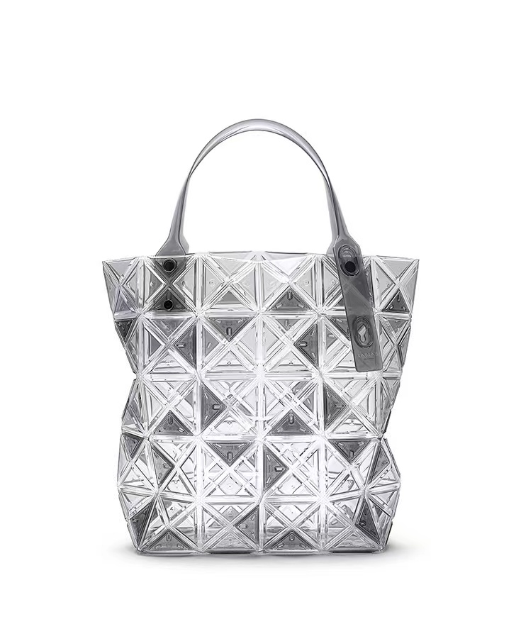 菱格包不断增添着各种花色和款式,保持着它在市场上的热度。最近BAO BAO ISSEY MIYAKE推出新款包袋“DAZZLE”系列,挑战透明材质菱格片的重塑,通过“注入成型”技术制作,将单一材料的透明碎片组合,从而形成充满未来感的全新包袋。三角碎片交织成品牌标志性的几何图案,创新性设计是其最大魅力。