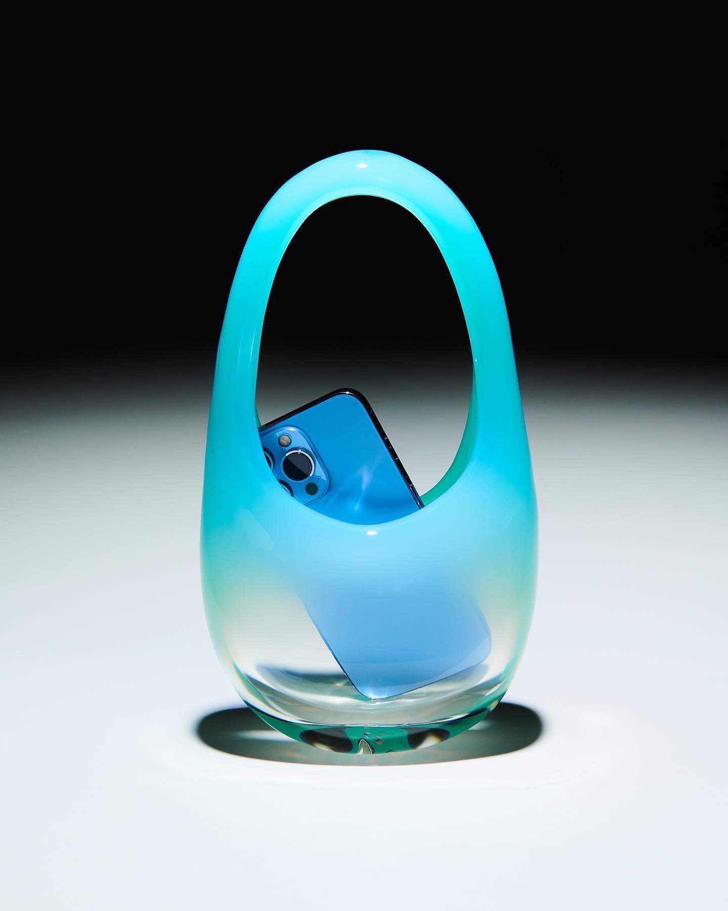 玻璃款式以极为复杂繁琐的玻璃吹制技术,打造出全玻璃制成的恶魔角款、镜面款以及渐层雅光蓝款。Kylie Jenner出席《The Kardashians》真人实境节目的发布会时便携带这一款恶魔角包,可见这款包袋在时尚圈掀起的热潮,以及自带话题谈论度。