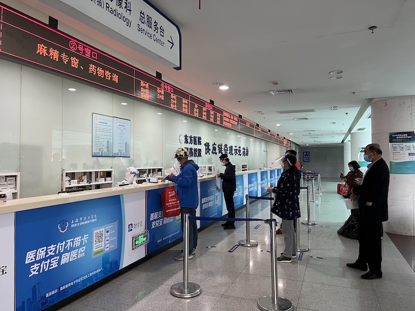 疫情期间,东方医院南北两院门诊大厅预检台新增了指示牌——“社区志愿者代配药服务台”。为了保证近期持续、大量的社区代配药需求,东方医院门诊前置,在预检台设立专人服务窗口指引,同步提供专窗挂号收费、专用诊台、专窗取药,大大方便了社区志愿者。