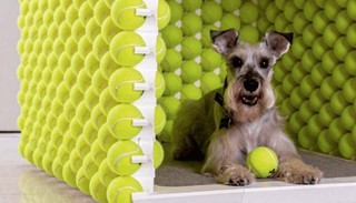 《看在宠物的份上》深入研究了全球各地几十个宠物产品和项目。这些案例反映了宠物用品市场中所发生的变化,特别是对宠物的生理和心理需求产生的新洞察。中国台湾地区设计公司A Cat Thing的模块化纸板猫室的产品灵感就来源于创始人夫妇救助的一只受过虐待的猫。这只猫喜欢躲在纸箱里的黑暗角落,否则就没有安全感。而总部在华盛顿特区的CallisonRTKL公司则推出了一款名为“球球屋”(Fetch House)的产品。这是一个可以调节大小的3D打印狗窝,且表面嵌满了网球,完美融合了狗狗们对抛接球游戏的爱好和居住的需求。