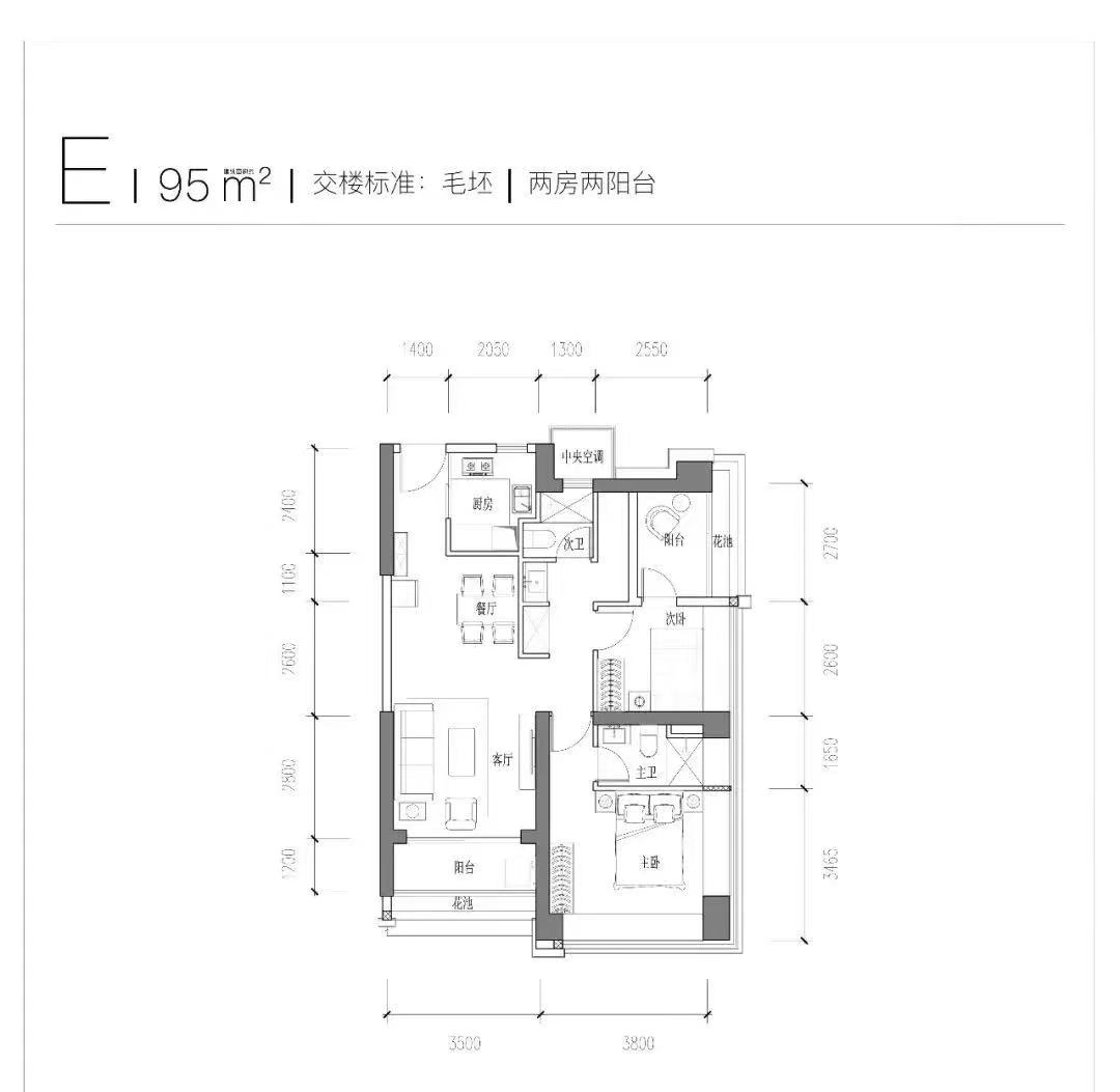 从户型来看,建面约95平方米的户型在次卧旁空出一个方正的阳台,可以做成三房。