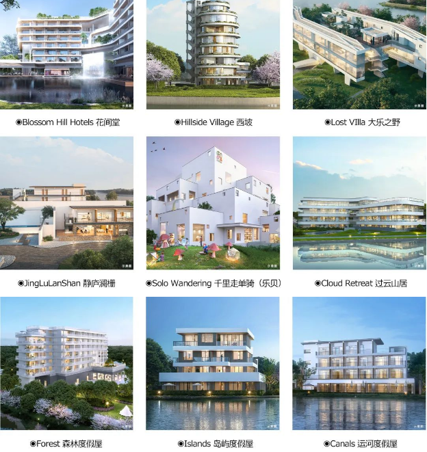通过多元业态配套、丰富场景体验、缤纷社群活动、亲密社交休闲、绿色农场作物等众多维度,以森境自然的栖居理念,定制精致野奢的度假体验。