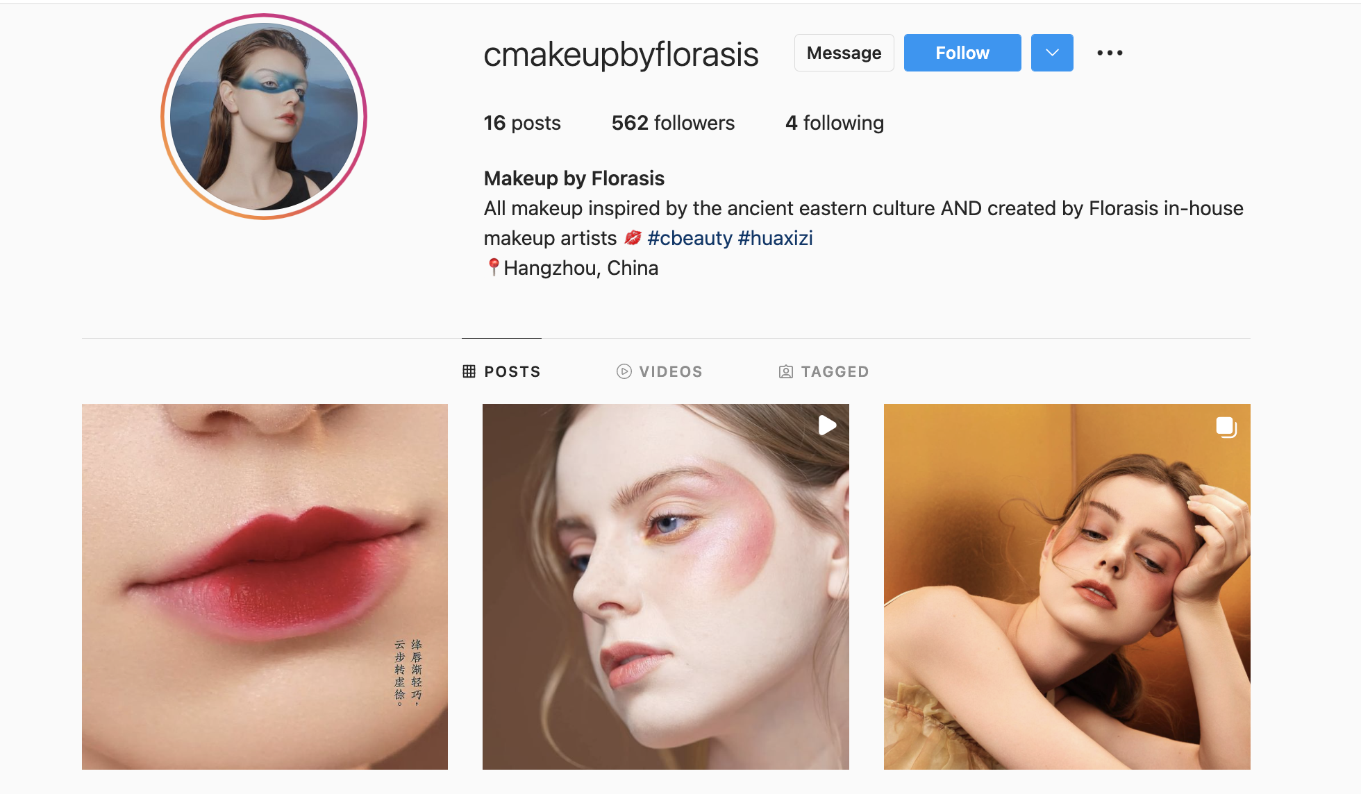 但从花西子近期的营销动作来看,本土化营销成为焦点。近日,花西子在Instagram上额外成立了一个官方账号“cmakeupbyflorasis”,展现了欧美模特使用花西子产品的妆效图。