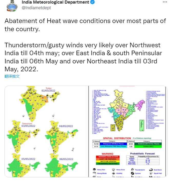 印度气象局预计,从周二开始,德里等地将迎来降雨,全国大部分地区的持续高温将有所减退。但由于印度开始进入夏季,高温还将重现。而高温过后,印度将迎来雨季。