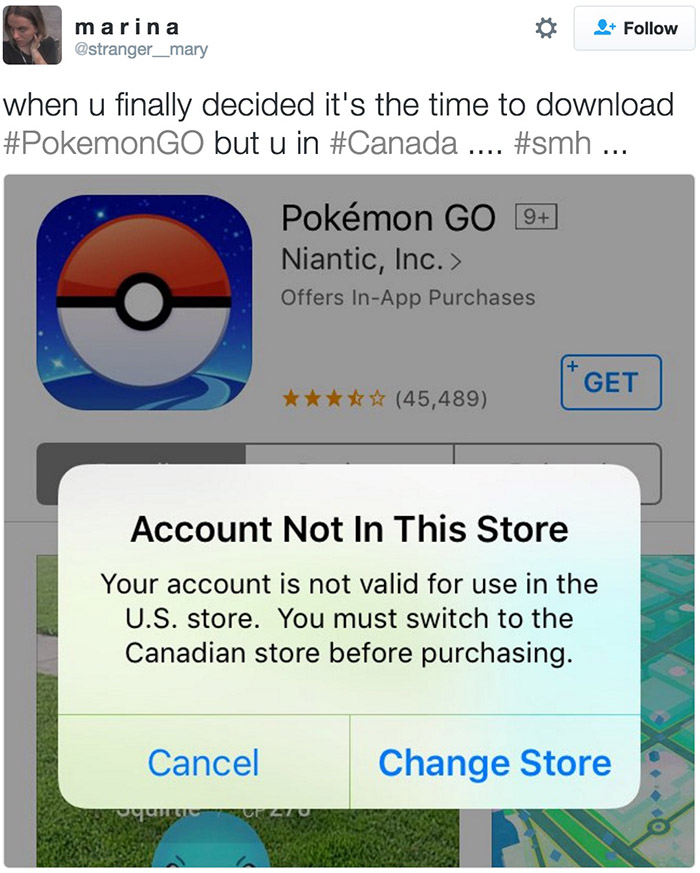 当全世界死宅都在疯狂收集小精灵时,中国和加拿大玩家(当然还有朝鲜苏丹沙特伊朗blabla)的心情都是这样的。