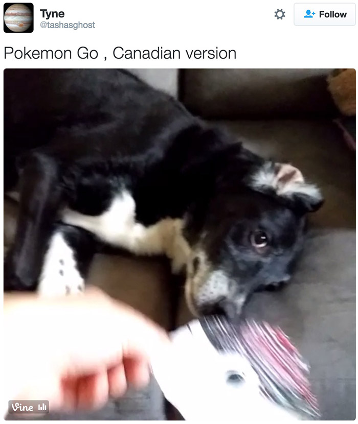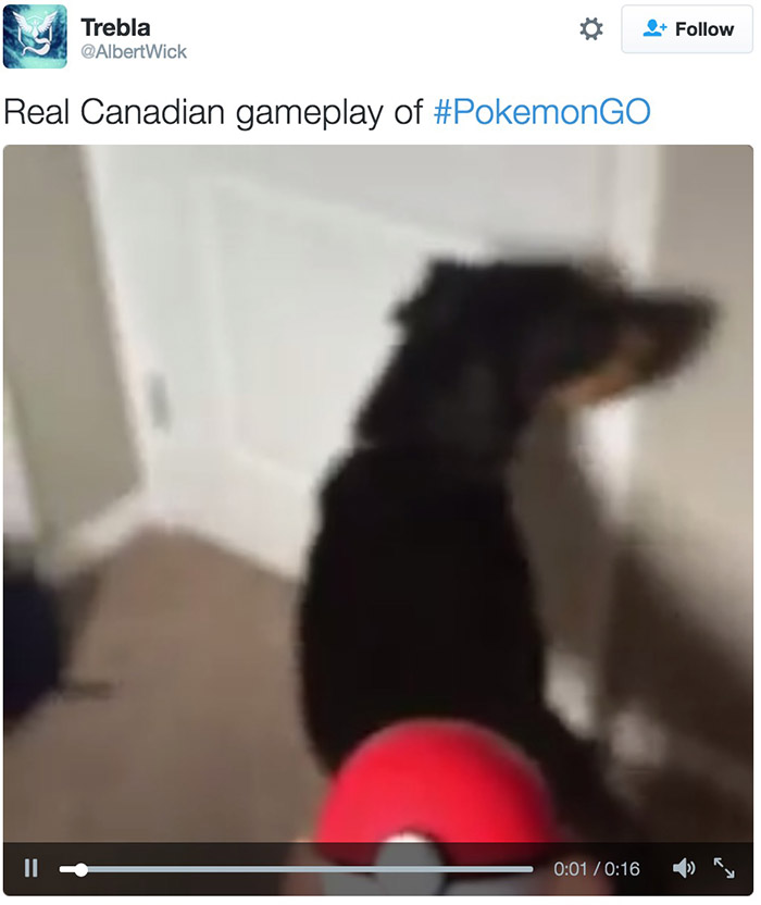 但是天性乐观的加拿大人民发明了很多利用有限条件游玩Pokemon Go的方法,比如拿你的精灵球往你家狗身上砸。